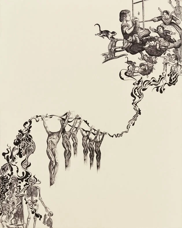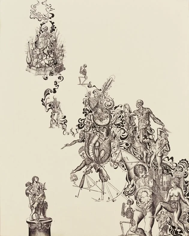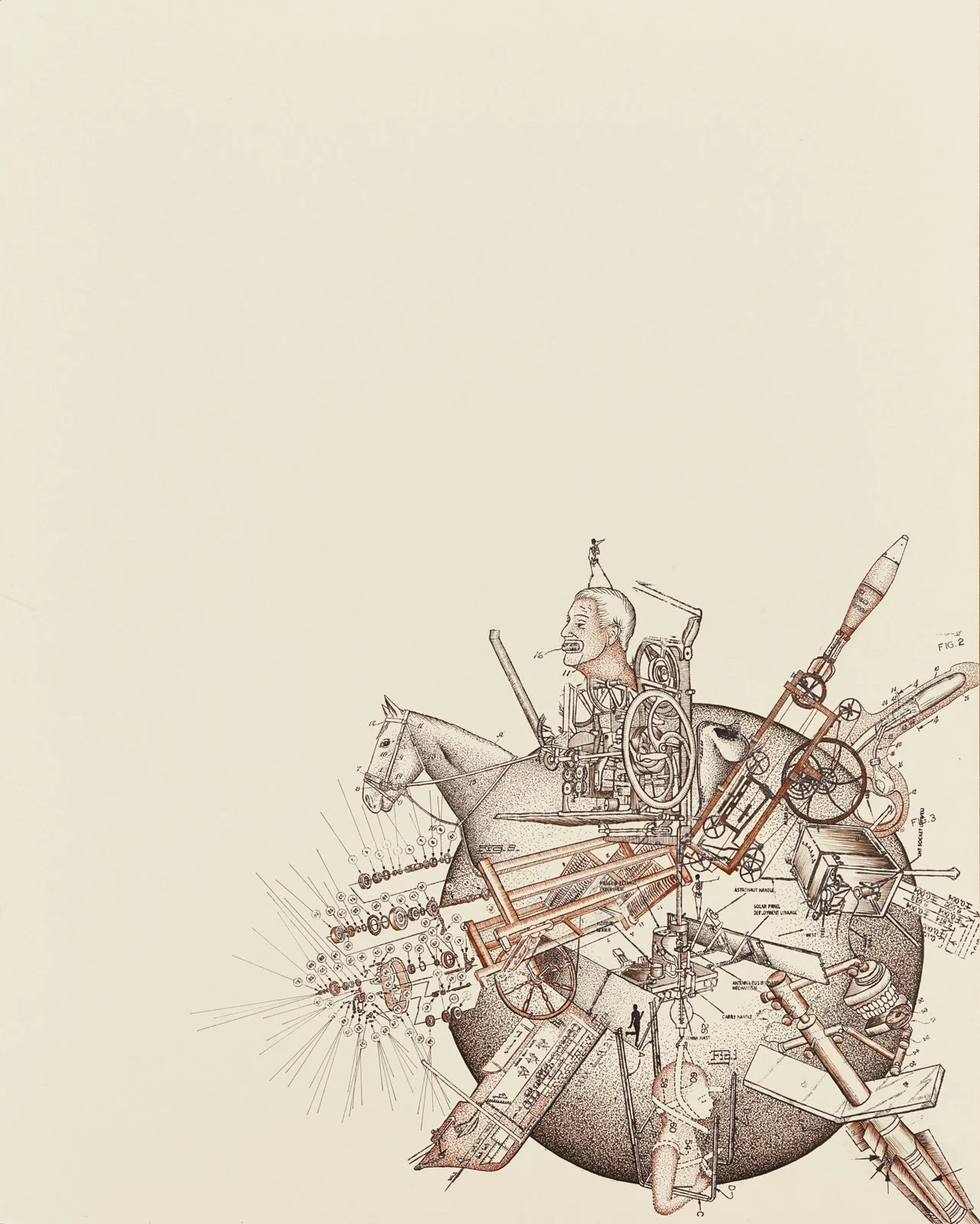 Halt, in the name of Progress! I am fascinated by the concept of linear progress. Capitalism justifies itself with its feigned advancement. This body of work remixes the imagery of Western culture to explore the paradox of linear progress.